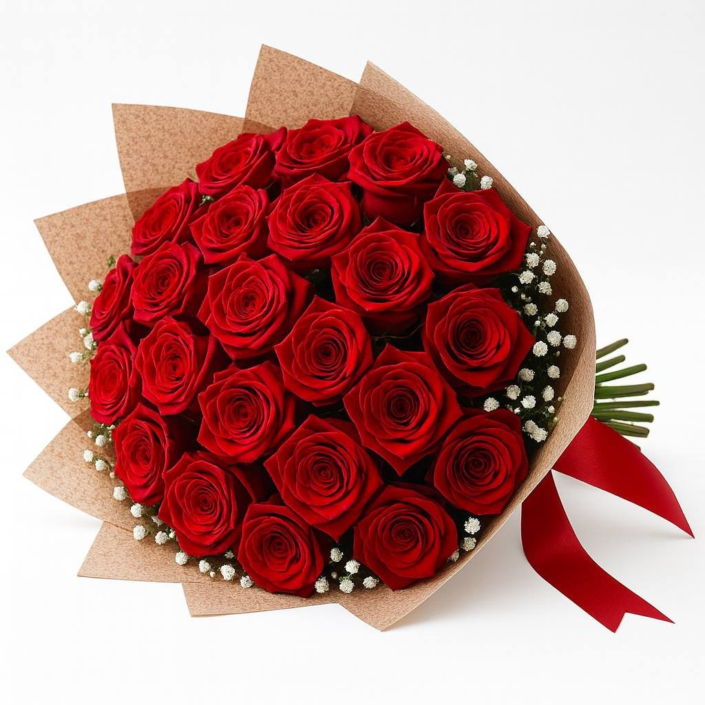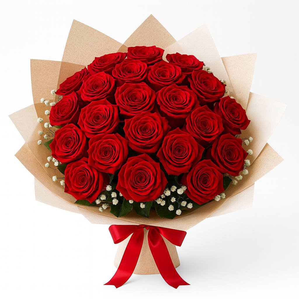 20’li Kırmızı Güller Buketi, tutku ve aşkın simgesi kırmızı güllerle özenle hazırlanmış etkileyici bir aranjmandır. Özel anlarınıza romantizm ve ihtişam katarken, hiç solmayan güzelliğiyle kalıcı bir iz bırakır.