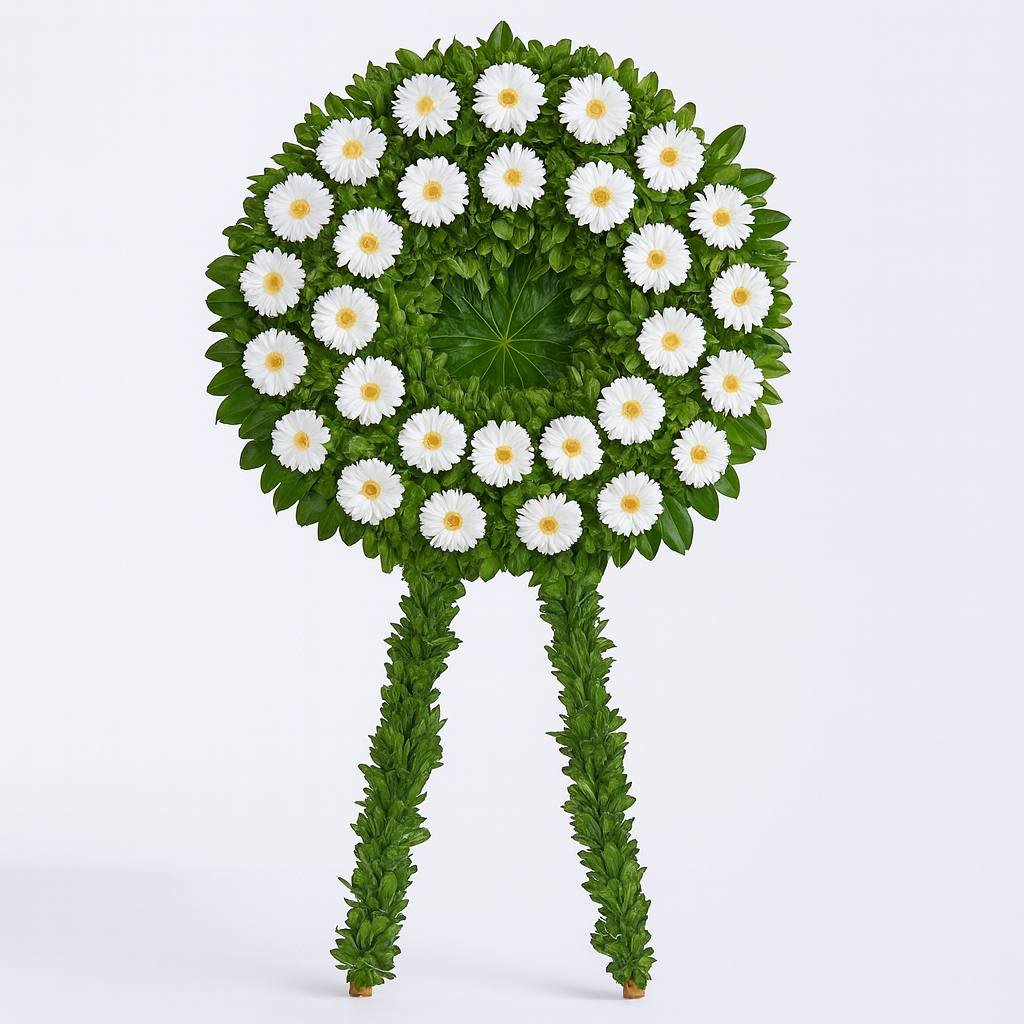 Ahşap 2 Ayaklı Cenaze Çelenk, hüznün ve saygının zarif ifadesi! Doğal ahşap ayaklar ve özenle seçilmiş çiçeklerle, sonsuzluğa uğurlanan sevdiklerinize veda anlarında saygı ve teselli sunar.