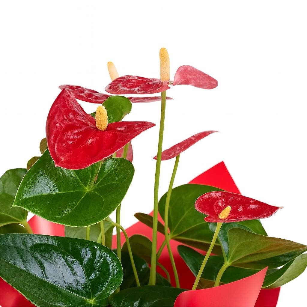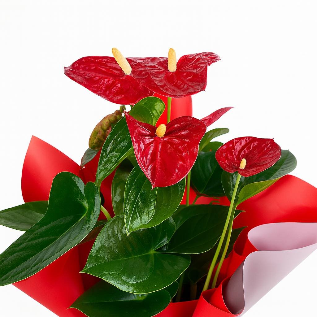 Tutku ve cesaretin simgesi kırmızı antoryum, egzotik güzelliğiyle yaşam alanlarınıza şıklık ve enerji getirir. Dayanıklı yapısıyla uzun süre keyif veren bir hediye!