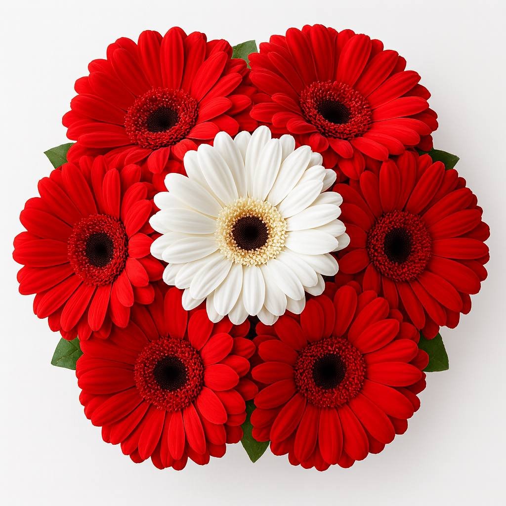 Kırmızı Beyazlı Gerbera Buketi, enerji dolu kırmızı ve saf beyaz gerberaların neşeli uyumuyla oluşturulmuş canlı bir aranjmandır. Coşku ve saflığın birleşimiyle her mekana mutluluk getirir.
