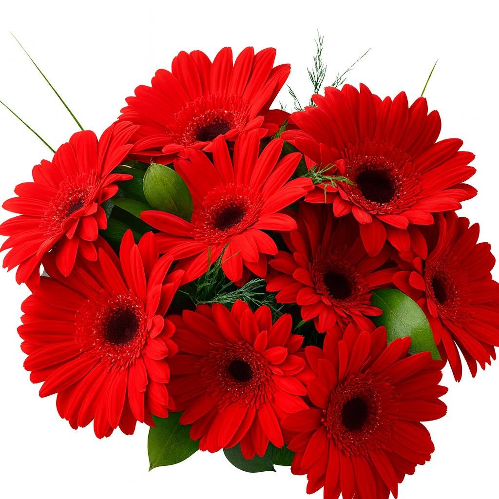 Enerjisiyle büyüleyen kırmızı gerbera buketi, tutku ve neşeyi bir arada sunuyor. Özel günlerin vazgeçilmez, canlı ve cesur hediyesi!