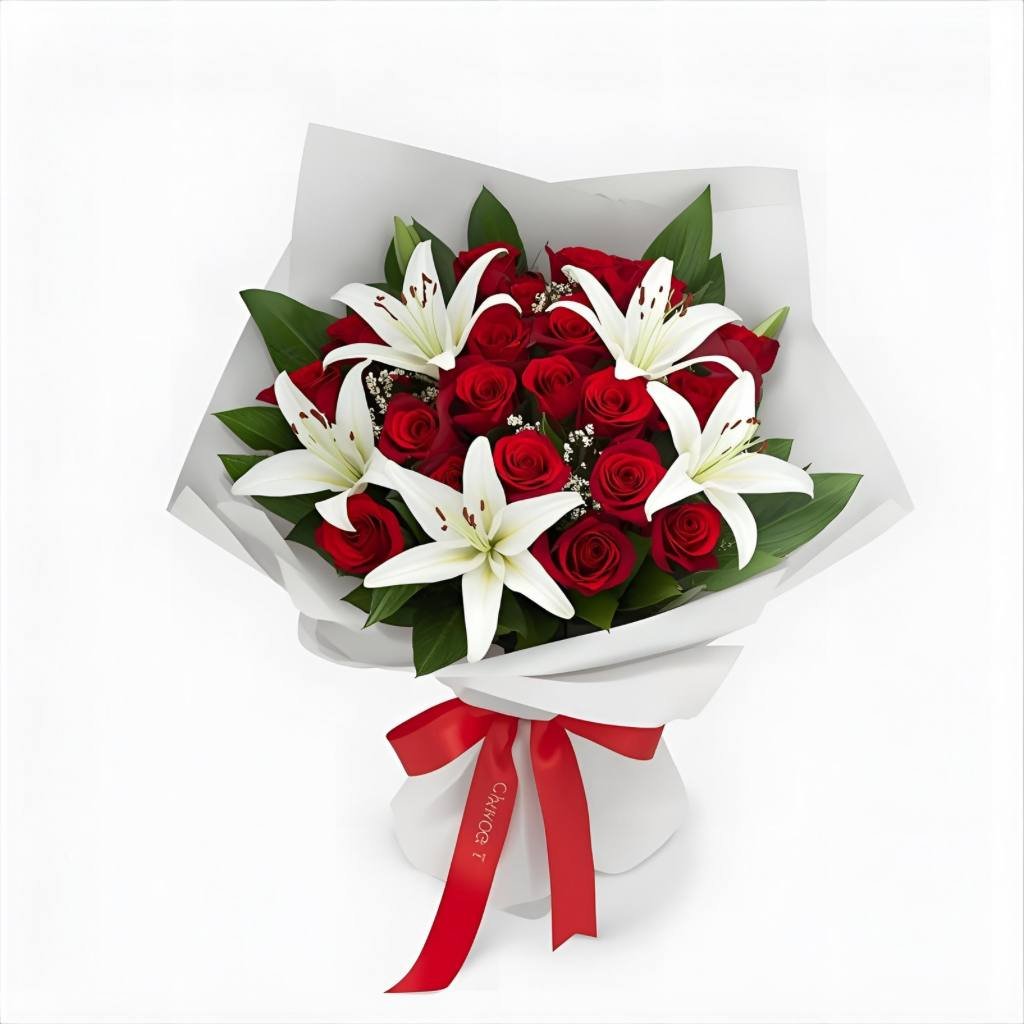 Lilyum ve Güller Buketi, ihtişam ve romantizmin muhteşem buluşması! Zarif lilyumlar ve tutkulu güller, lüks ve duygu dolu bir hediye deneyimi sunar.